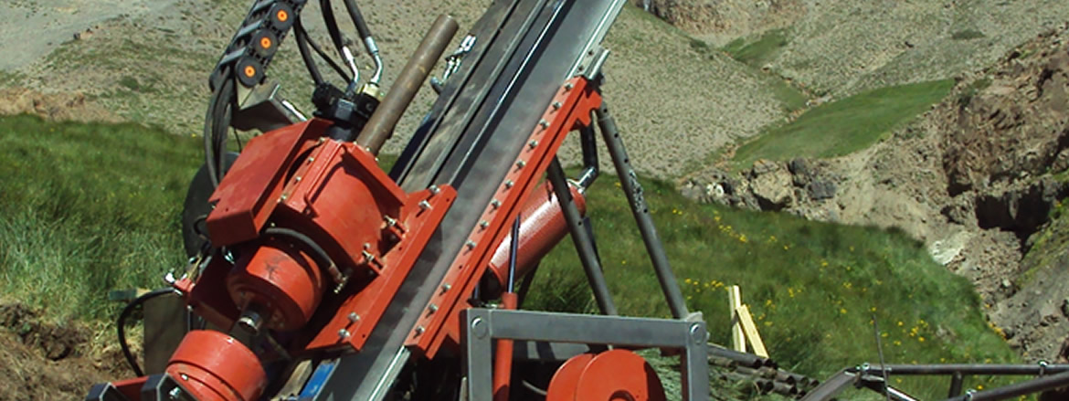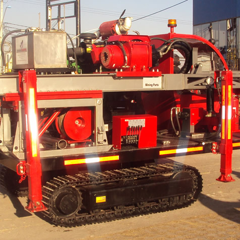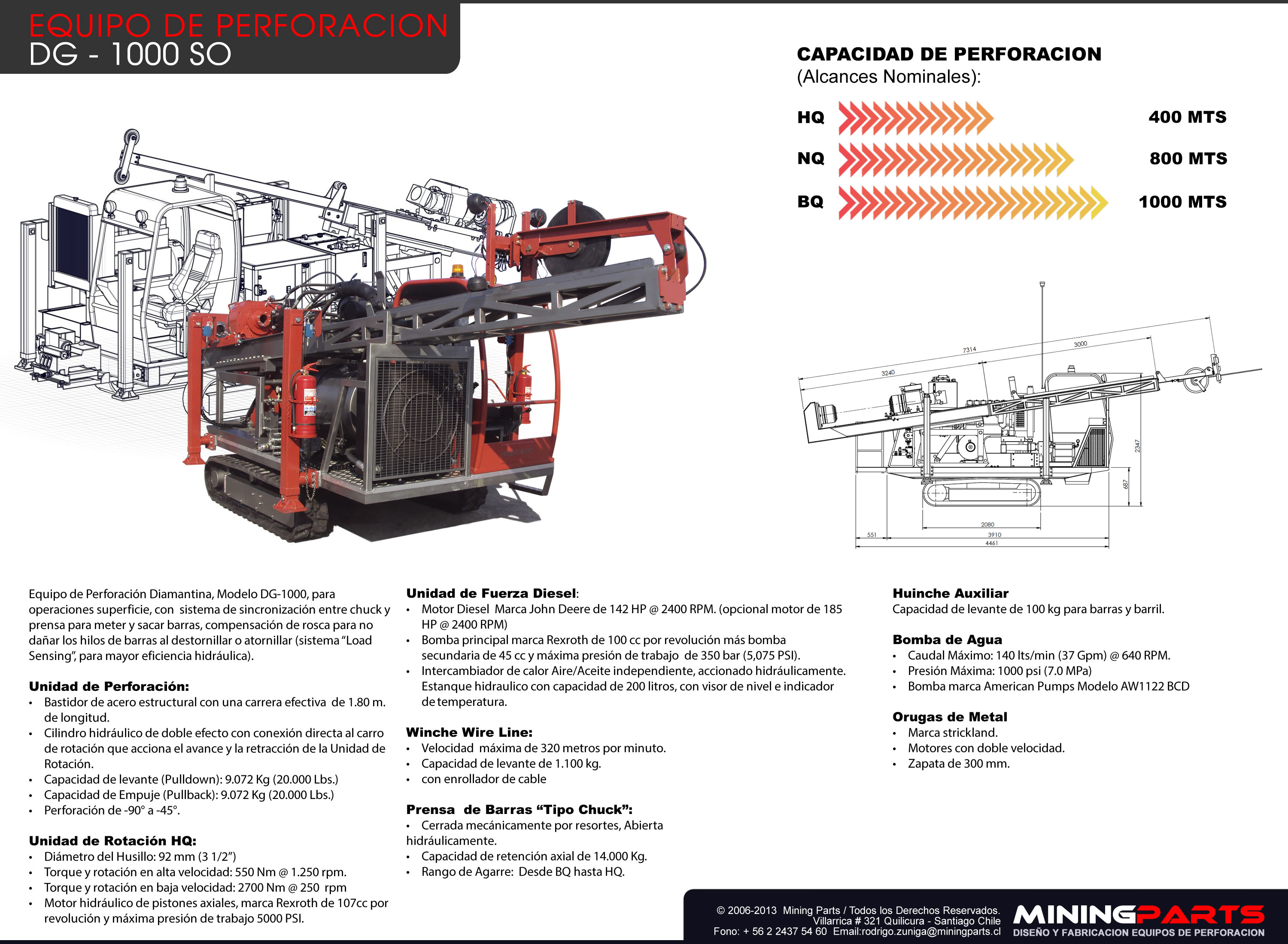 Equipo de Perforación Diamantina, Modelo DG-1000 SO, para operaciones superficie con Winche Wire Line, sistema de sincronización entre Chuck y prensa para meter y sacar barras, compensación de rosca para no dañar los hilos de barras al destornillar o atornillar (sistema “Load Sensing”, para mayor eficiencia hidráulica).